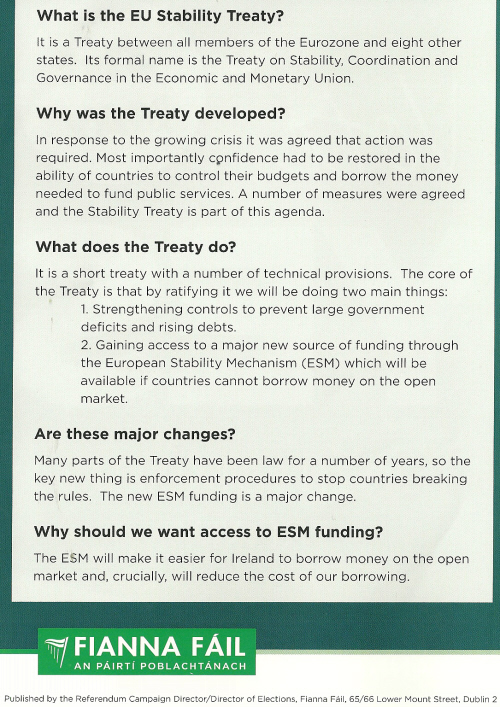 “Vote Yes for the Stability Treaty” Leaflet from Fianna Fail » ffyes2