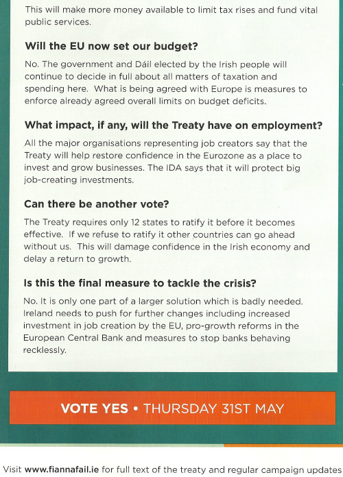 “Vote Yes for the Stability Treaty” Leaflet from Fianna Fail » ffyes3