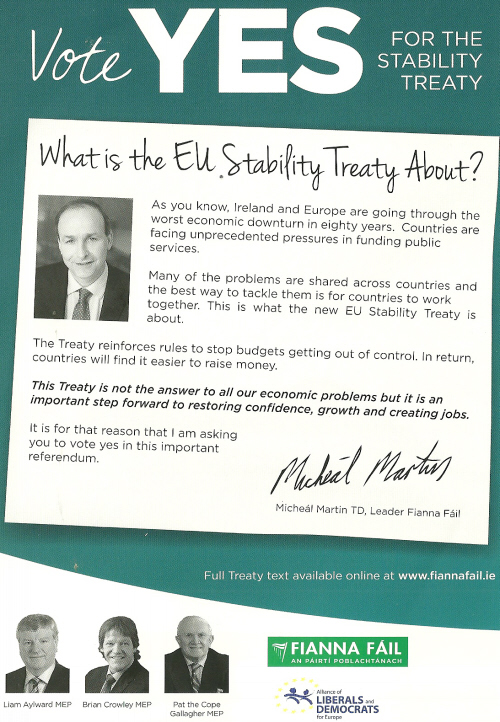 “Vote Yes for the Stability Treaty” Leaflet from Fianna Fail » ffyes4