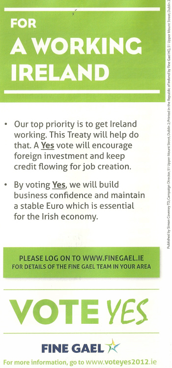 “For A Working Ireland … Vote Yes” Leaflet from Fine Gael » fgfiscal6