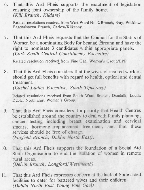 From the 1981 Fine Gael Ard Fheis the motions on Health and Women’s Affairs » healthwa81c