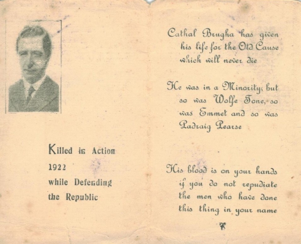 Cathal Brugha Memorial Card from the mid 1920’s May 25, 2012