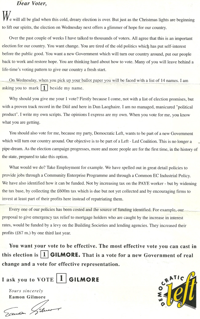From 1992 “If you think Eamon Gilmore Should be re-elected don’t take any chances …give him your No. 1 vote” » gilmoreno1d