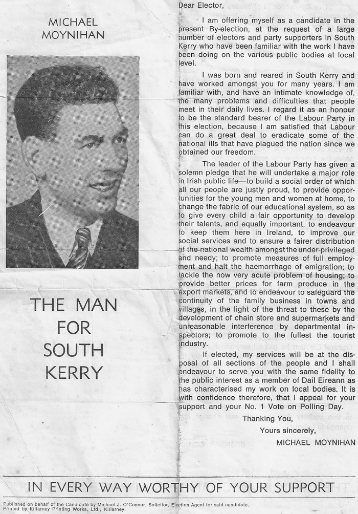 “Brendan Corish The Man for Ireland” Leaflet from Michael Moynihan 1966 Kerry South By-Election » mmoynihan66by2