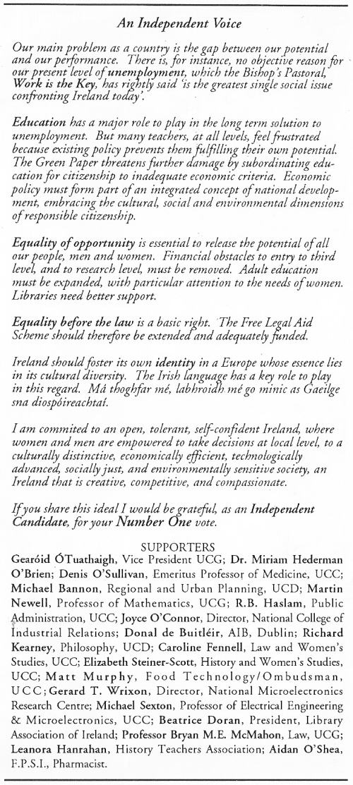 Leaflet from Professor Joseph Lee- 1993 NUI Seanad » jlee93b