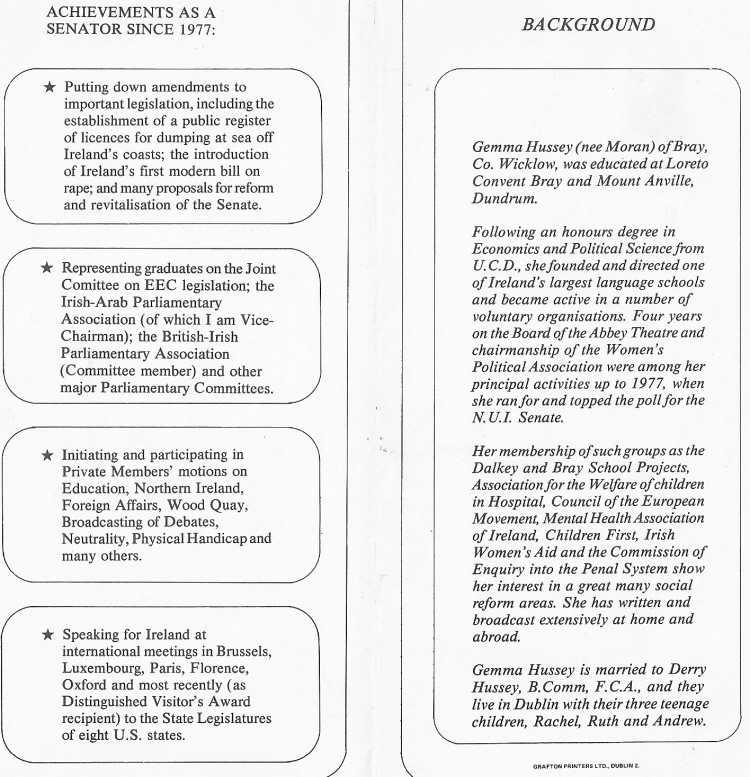 Leaflet from Gemma Hussey -1981 Seanad Election NUI » ghussey81b