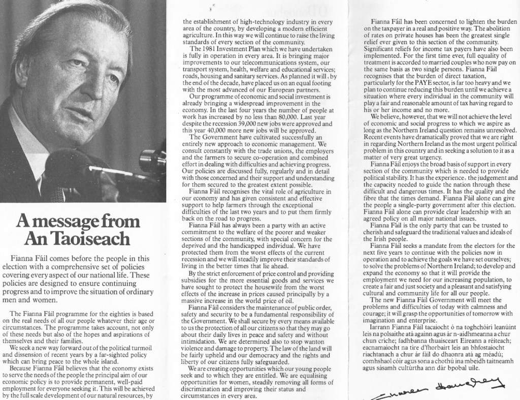 1981 leaflet for Lorcan Allen, Sean Browne, Gus Byrne, Hugh Byrne -Fianna Fail- Wexford » ffhaugheymessage81