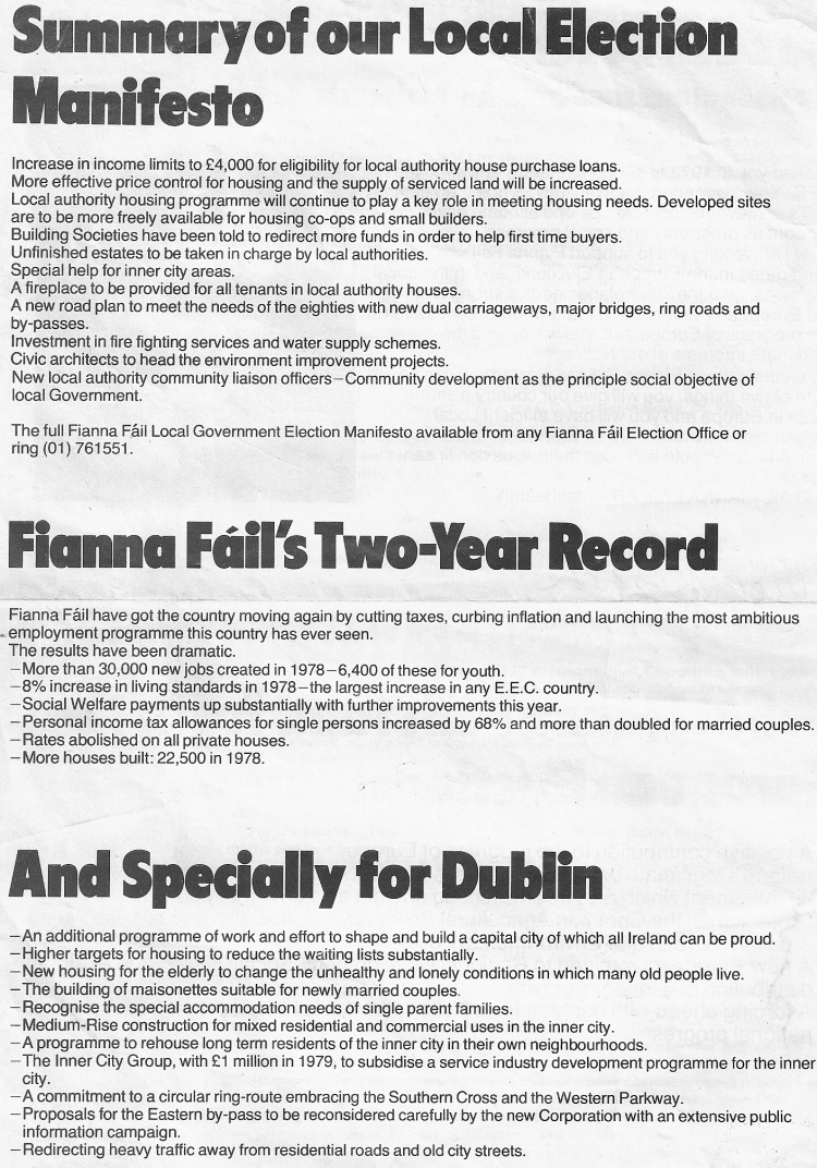 Gerard Brady, Seamus Kenny, Pól Mac Murchú and Noirin Slattery- Fianna Fail 1979 Local Elections Area 9 Dublin » ff79eurodub3