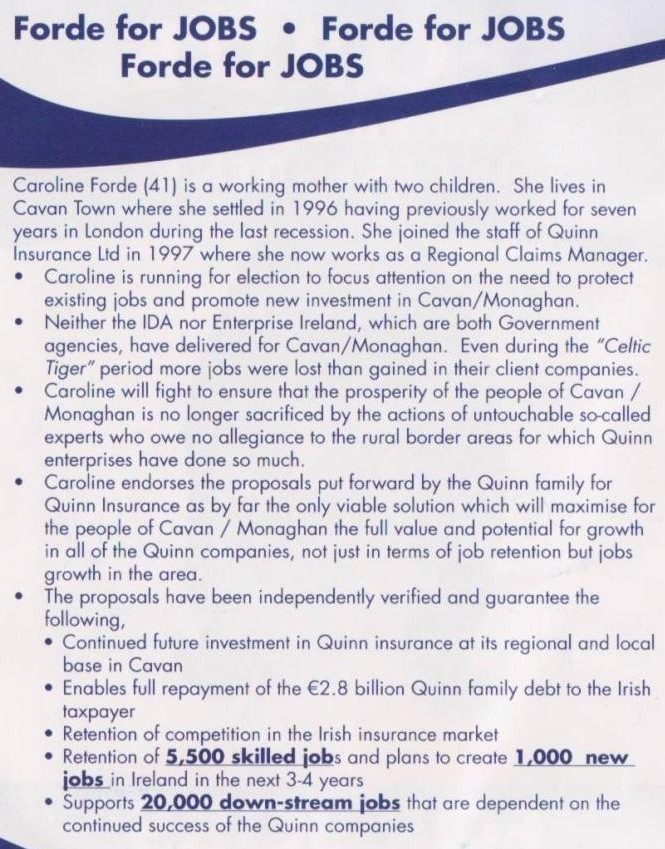 Leaflet from Caroline Forde ( Quinn candidate) -Cavan Monaghan -2011 General Election » cforde2