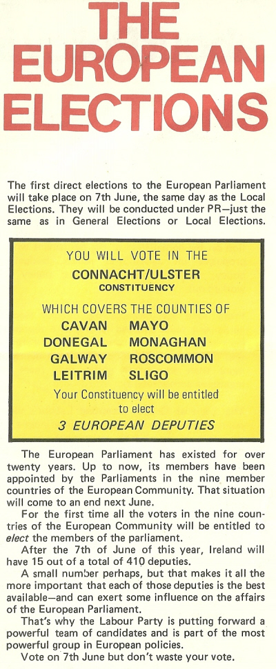 1979 leaflet for Michael D Higgins -Labour Party- Connaught Ulster -European Elections » michaeld79d