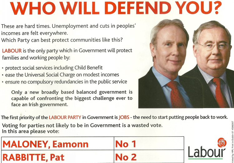 “Who Will Defend You?” leaflet from Pat Rabbitte, Eamonn Maloney-Labour Party -2011 General Election Dublin South West. » labourdefend