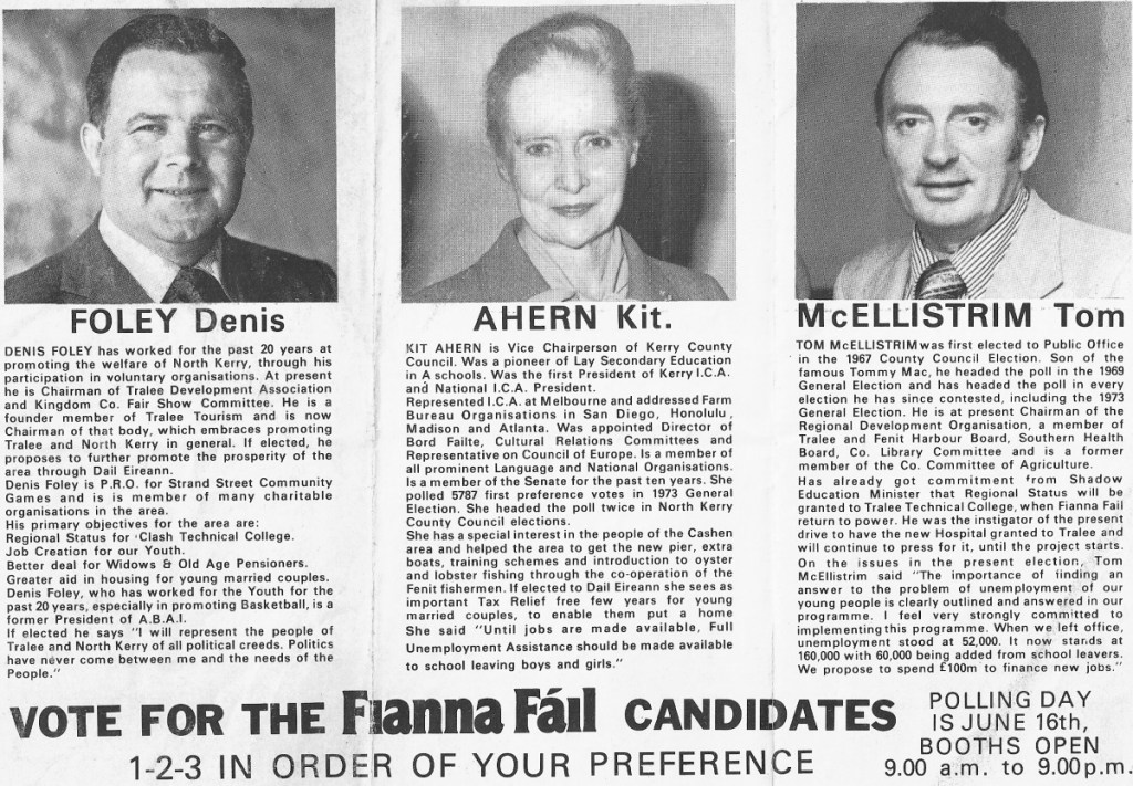 From 1977 leaflet for Denis Foley, Kit Ahern and Tom McEllistrim -Fianna Fail – Kerry North » ffnkerry77d