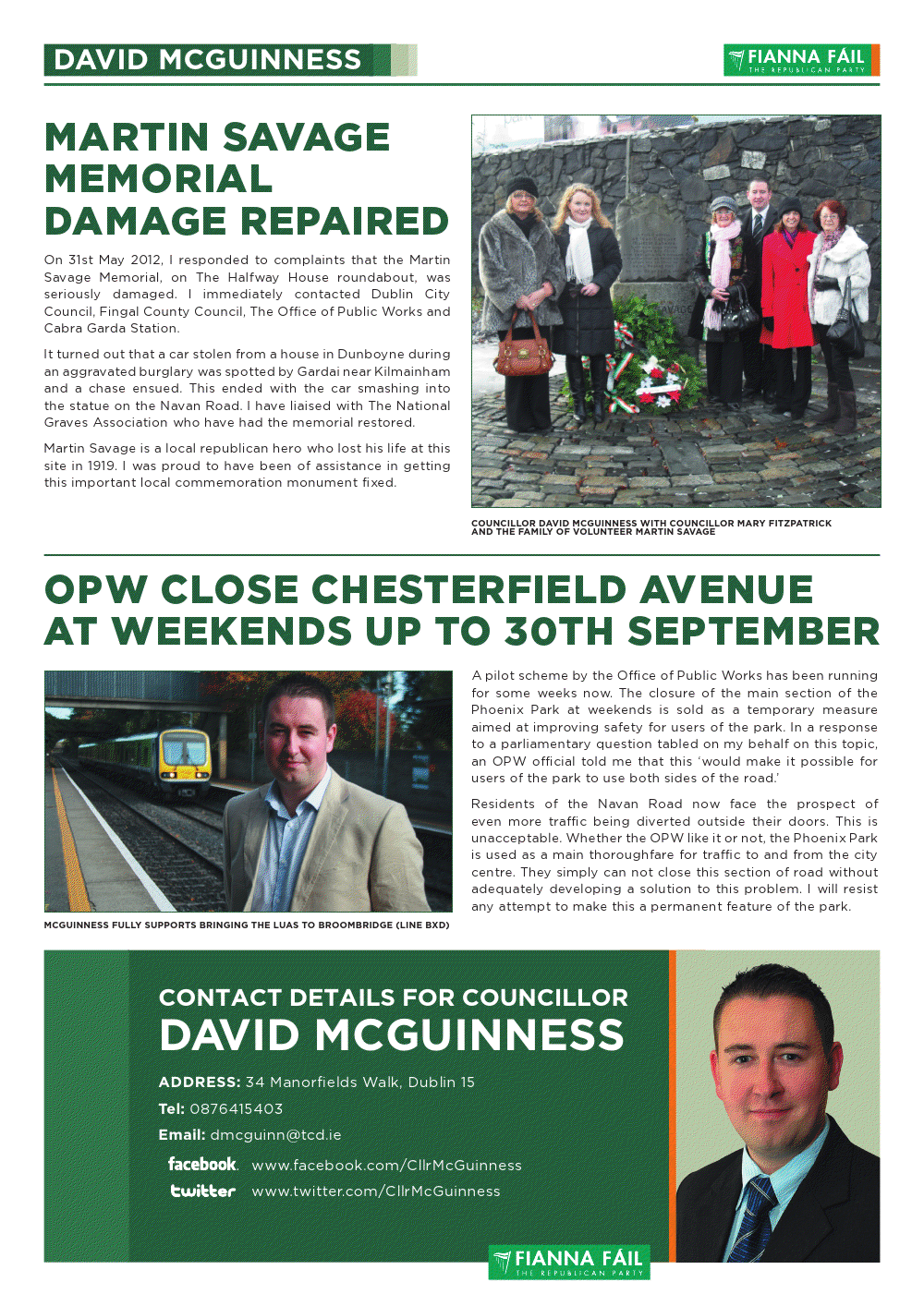 Leaflet from David McGuinness- Fianna Fail- introducing himself to voters in the new section of Dublin West » dmcguinnessnewarea2