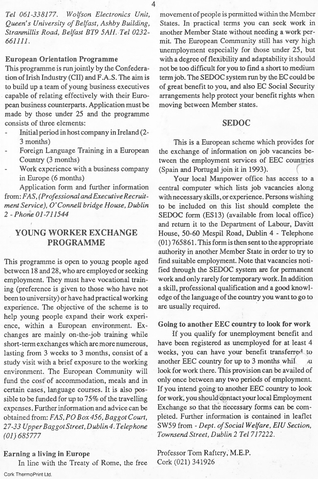 From circa 1987 – “Student Guide To Europe” from Tom Raftery M.E.P. – Fine Gael -Munster » rafterystudent4