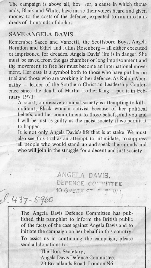 “Angela Davis On Trial” Leaflet from the Angela Davis Defence Committee circa 1971 » adavis6