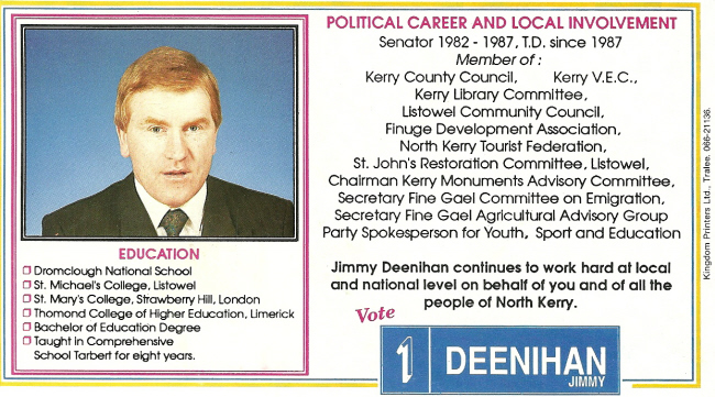 Vote 1 Jimmy Deenihan “The People’s Champion” -Fine Gael -1989 General Election -Kerry North » deenihan89b
