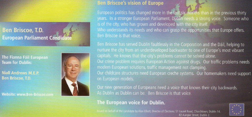 Ben Briscoe “The European voice for Dublin” -Fianna Fail -1999 European Elections Dublin » briscoe99b