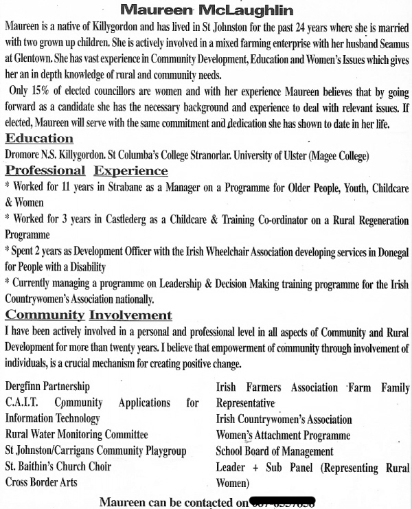 Leaflet from Dessie Larkin, Maureen McLaughlin-Independent Fianna Fail -Letterkenny -2004 Local Elections » larkinmclaughlin04c