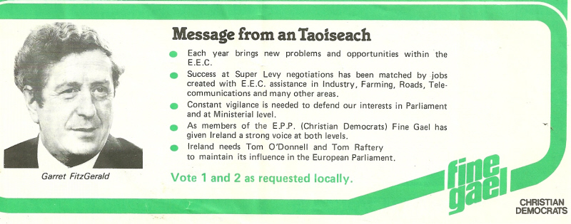 Leaflet from Tom O’Donnell and Tom Raftery -Fine Gael- 1984 European Elections -Munster » munster84c