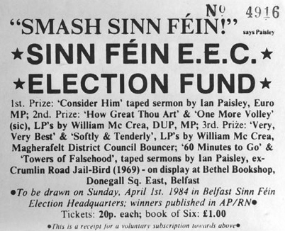 Humourous ‘Smash Sinn Fein’ Raffle Ticket from 1994 » ticketraffle5r