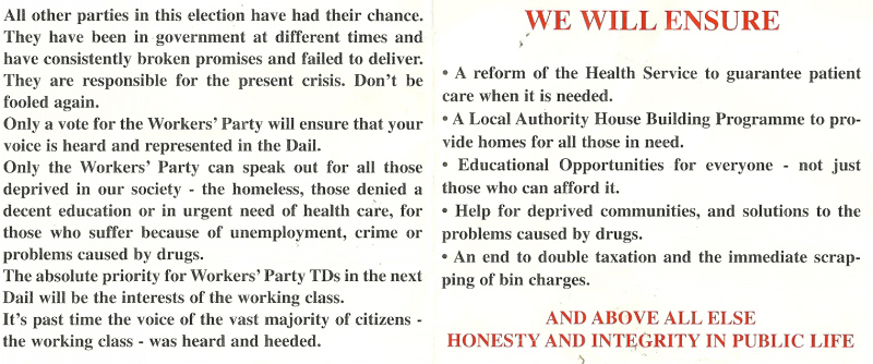 Leaflet from Ted Tynan -Workers Party- 2002 General Election -Cork North Central » tynan02b
