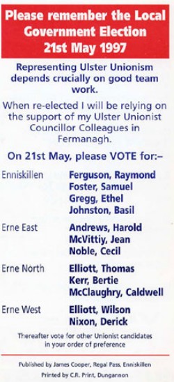 Flyer from Ken Maginnis -Ulster Unionist Party -1997 Fermanagh South Tyrone » maginnis97b