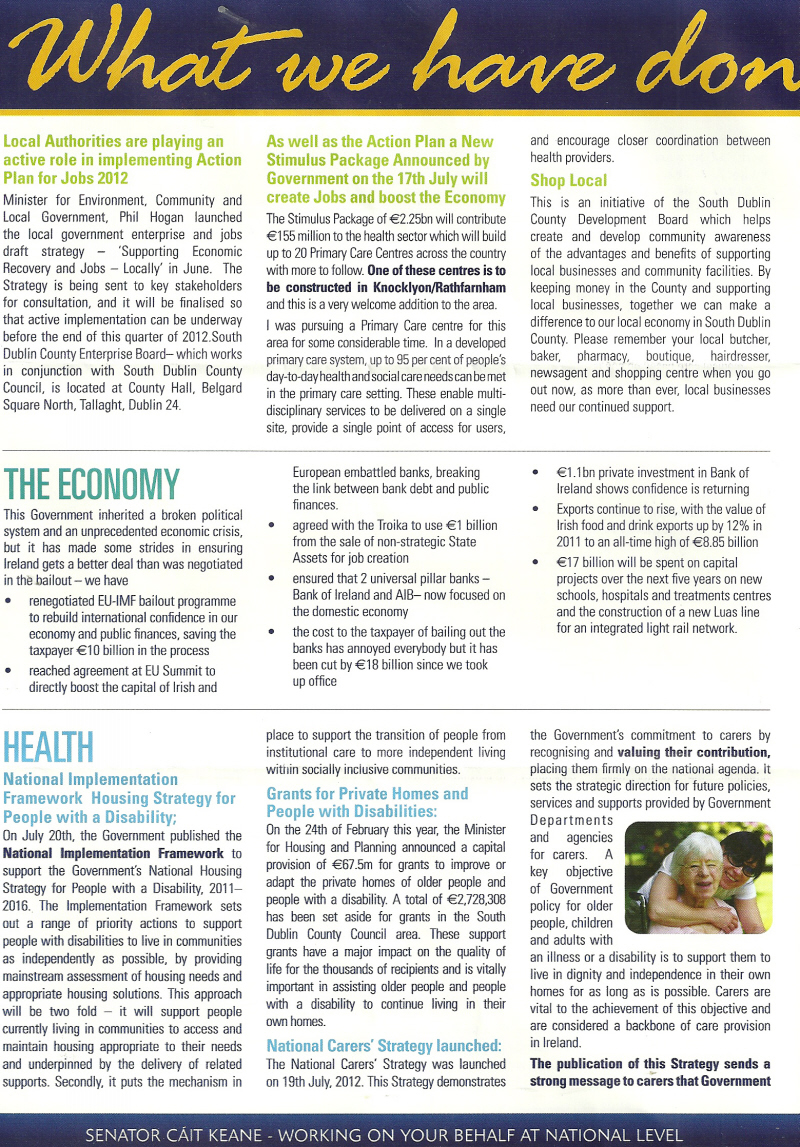 “What we have done in Government” -Leaflet from Cáit Keane Fine Gael » ckeanegov1