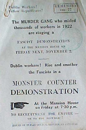 From November 1934, poster advertising a Republican Congress protest at a rally addressed by Eoin O’Duffy in the Mansion House » 0592