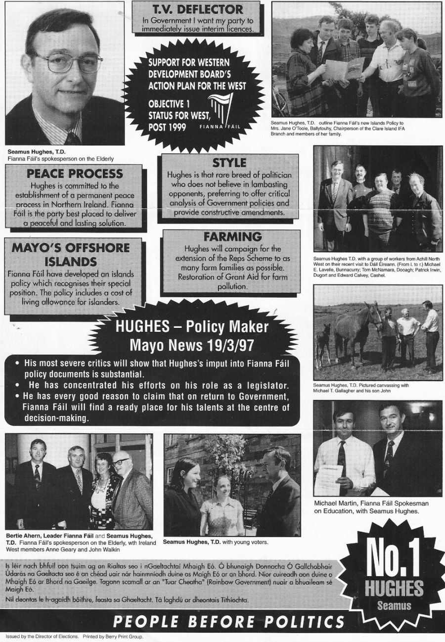 Leaflet from Seamus Hughes -Fianna Fail -Mayo -1997 General Election » shughes97a