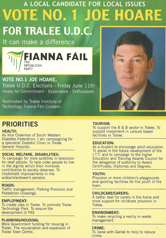 Leaflet from Joe Hoare -Fianna Fail -2004 Local elections -Tralee UDC » jhoare1