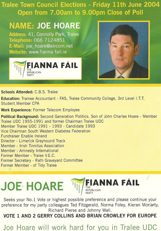 Leaflet from Joe Hoare -Fianna Fail -2004 Local elections -Tralee UDC » jhoare2