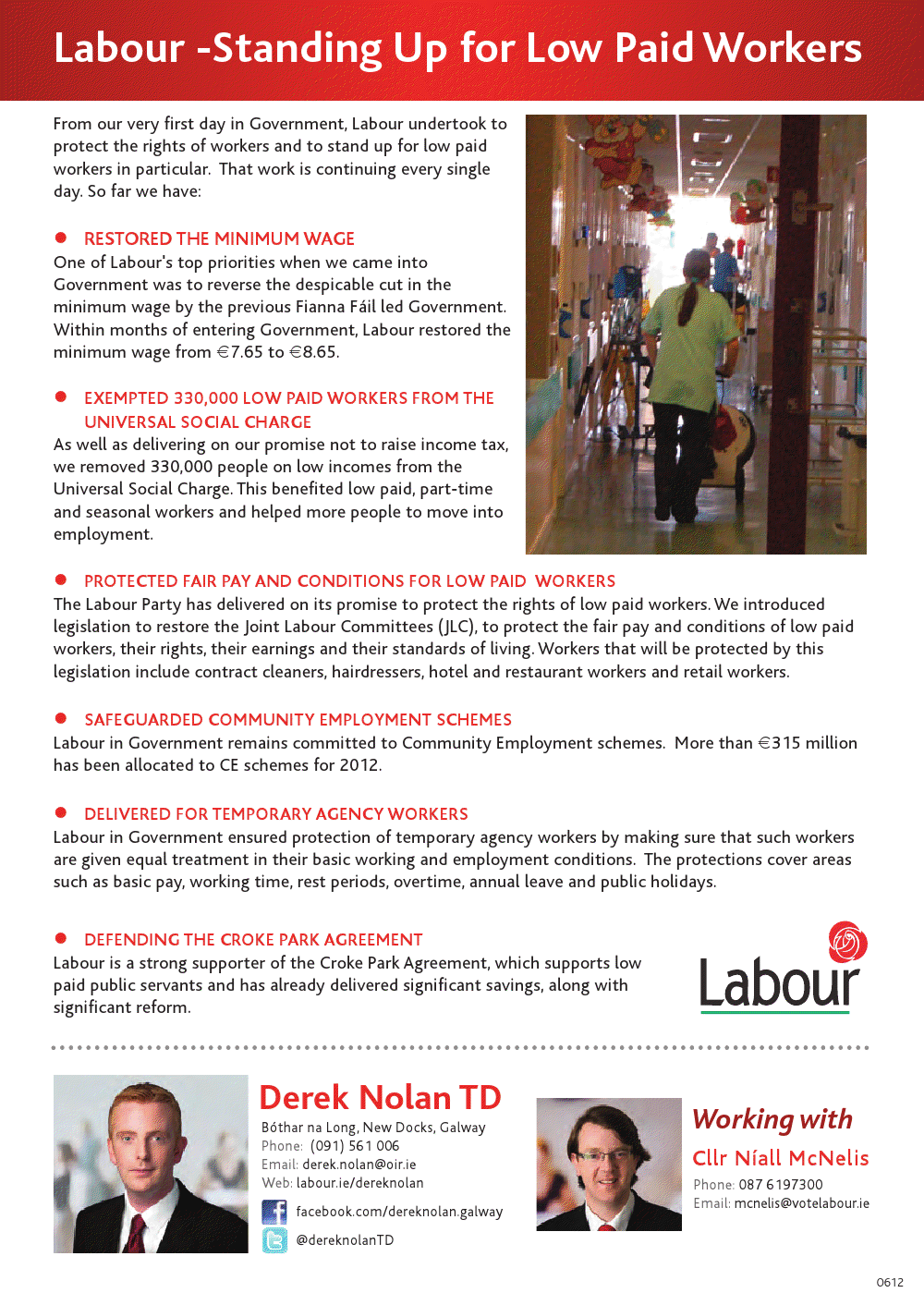 “Labour -Standing Up for Low Paid Workers” -Leaflet from Derek Nolan -Labour -Galway West » nolanlowpaid2