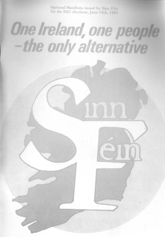 “One Ireland, one people” -1984 Sinn Fein European Election Manifesto » sf84p1