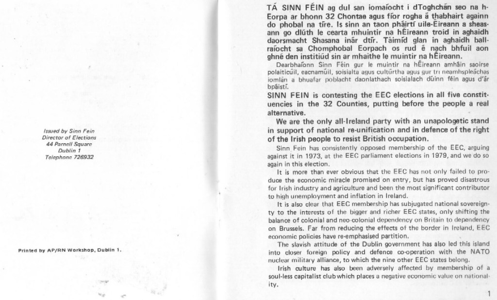 “One Ireland, one people” -1984 Sinn Fein European Election Manifesto » sf84p2