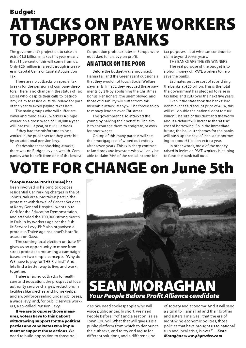 Leaflet from Sean Moraghan -People Before Profit – Tralee TC 2009 Local Elections » moraghan2