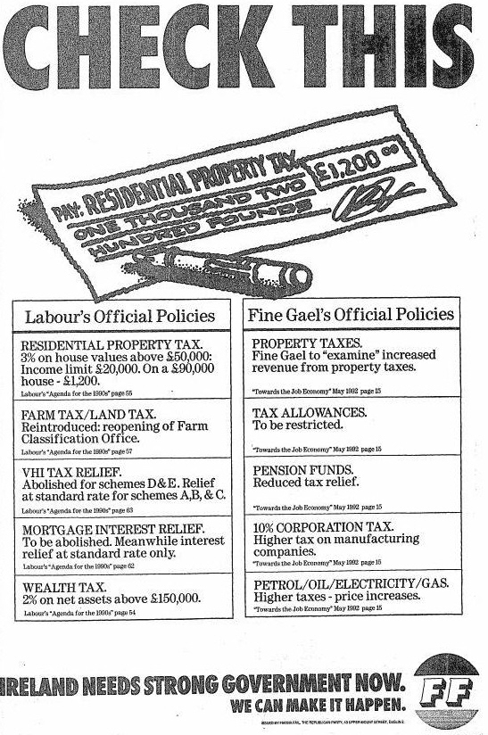 1992 Anti Property Tax ad from Fianna Fail » property92