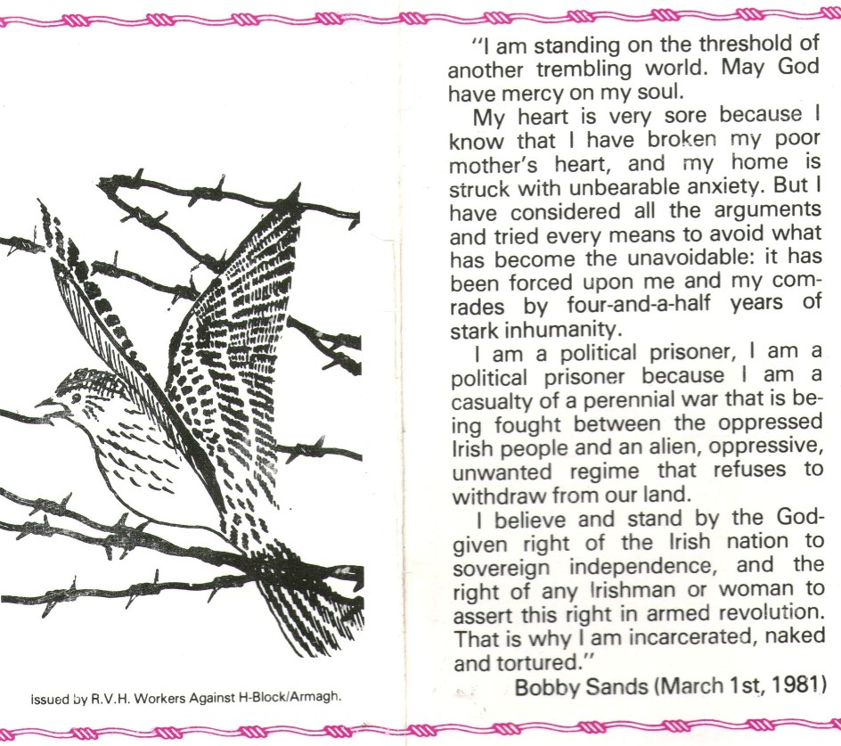 Hunger Strike Memorial card issued by The Royal Victoria Hospital Workers Against H-Block/Armagh » hblockmemrvh3