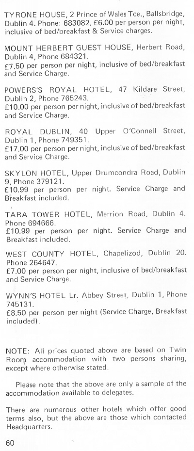 A list of hotels (with prices -Jurys for £11.90) from the 1980 Fianna Fail Ard Fheis Clár » hotels2