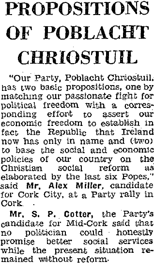 Ads for An Poblacht Chríostúil (Christian Republic) 1960 LE Waterford and 1965 GE Cork » pobchris65