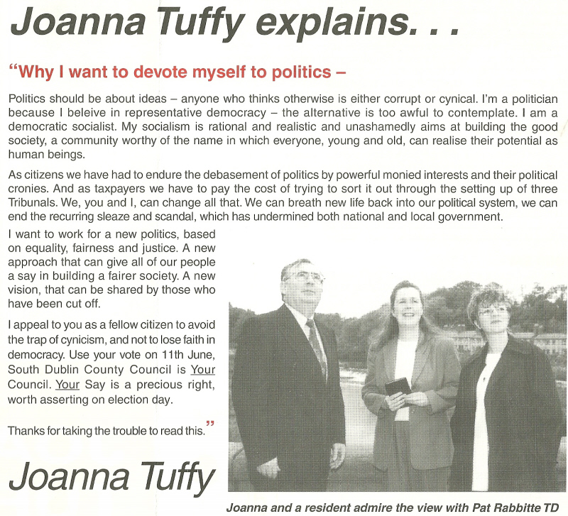1999 Local Elections leaflet from Joanna Tuffy -Labour -Lucan » jtuffy99c