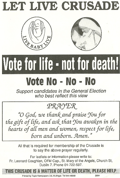 From 1992 a Leaflet from Let Live Crusade- “Vote for Life – not for death!” Vote No – No – No » letlive92