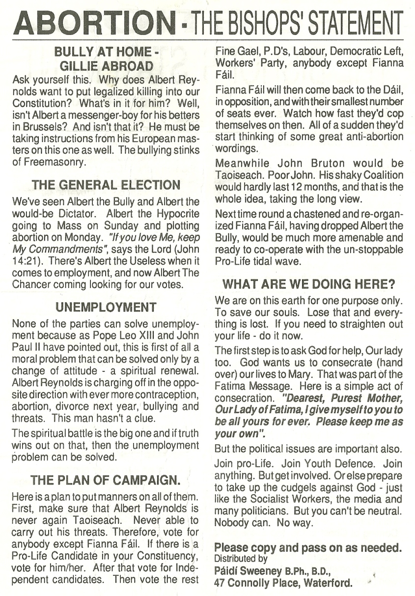 From 1992 “The Supreme Court Judges who approved abortion in the X-case committed the mortal sin of murder……” » bishops92b
