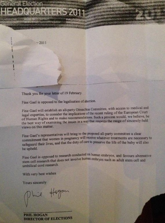 “Fine Gael is opposed to the legislation of Abortion”. 2011 General Election Letter from Phil Hogan » fgabortion
