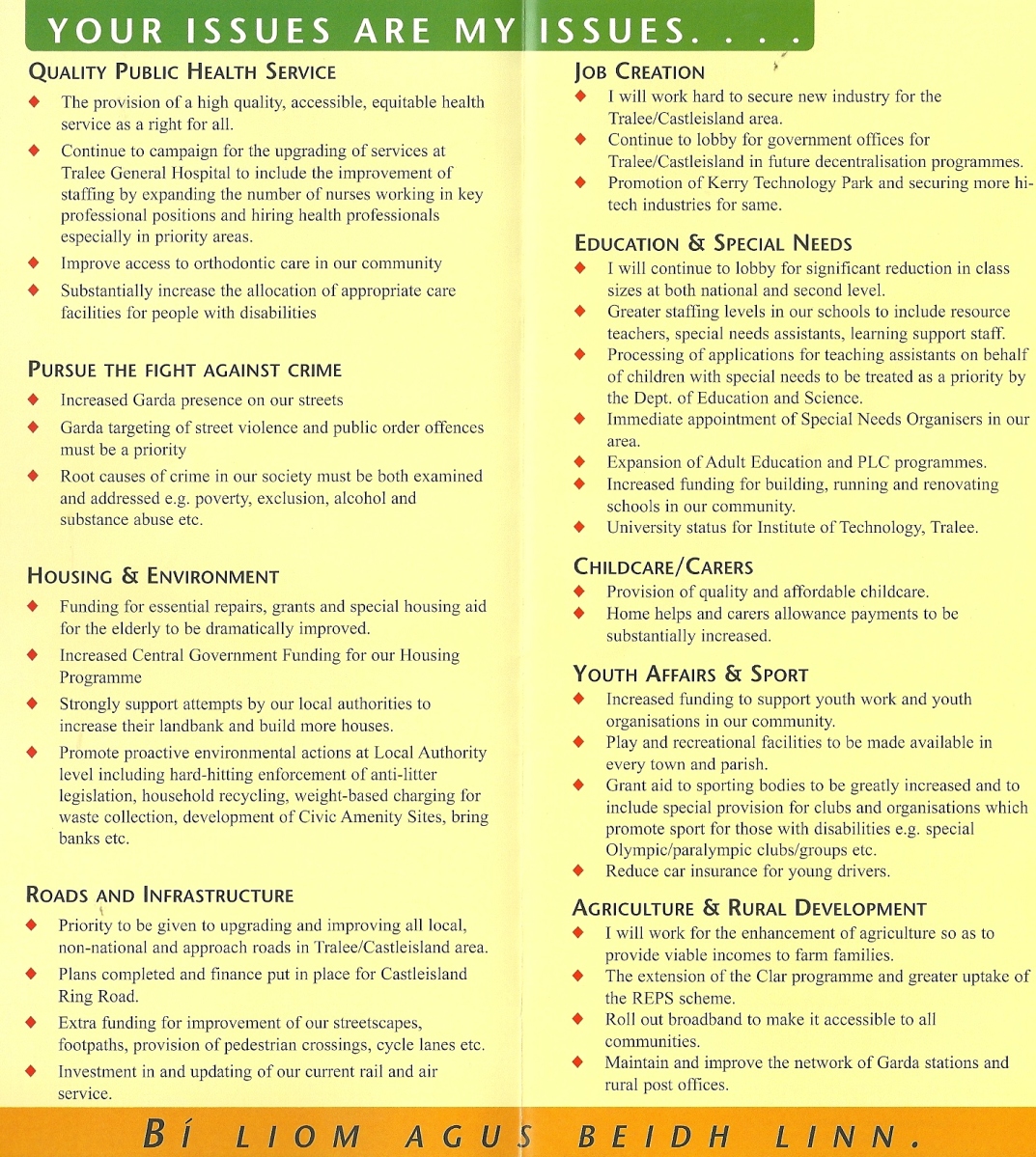 From the 2004 Local Elections a leaflet for Fianna Fail candidate Norma Foley who was running for a seat on Kerry County Council and Tralee Town Council.