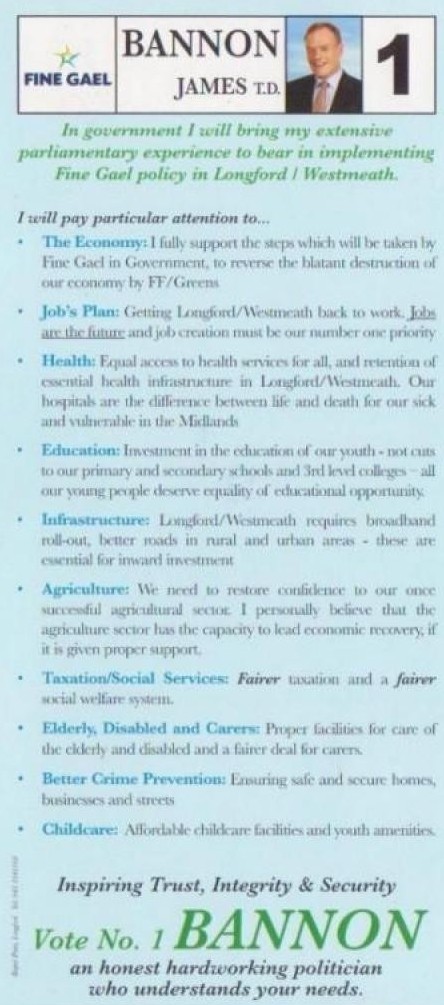 Leaflet from James Bannon -Fine Gael -Longford Westmeath 2011 General Election » jbannon1