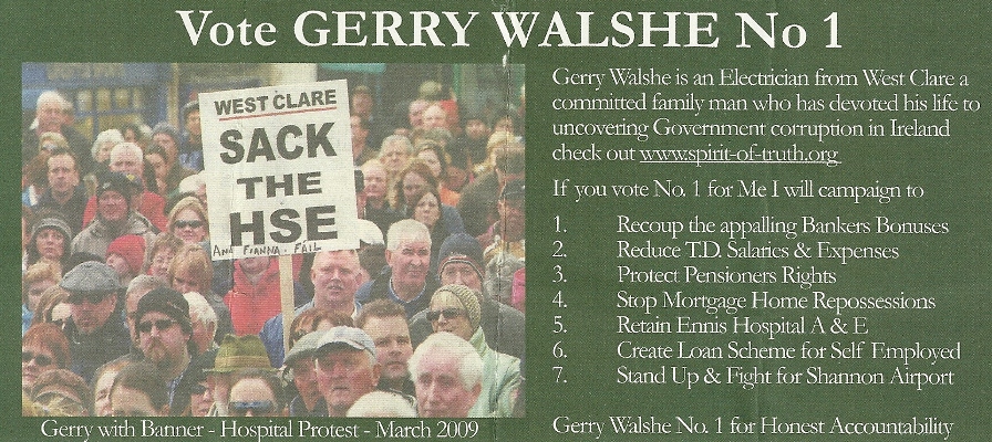 Leaflet from Gerry Walshe -New Ireland Party- Clare 2011 General Election » gwalshe11b