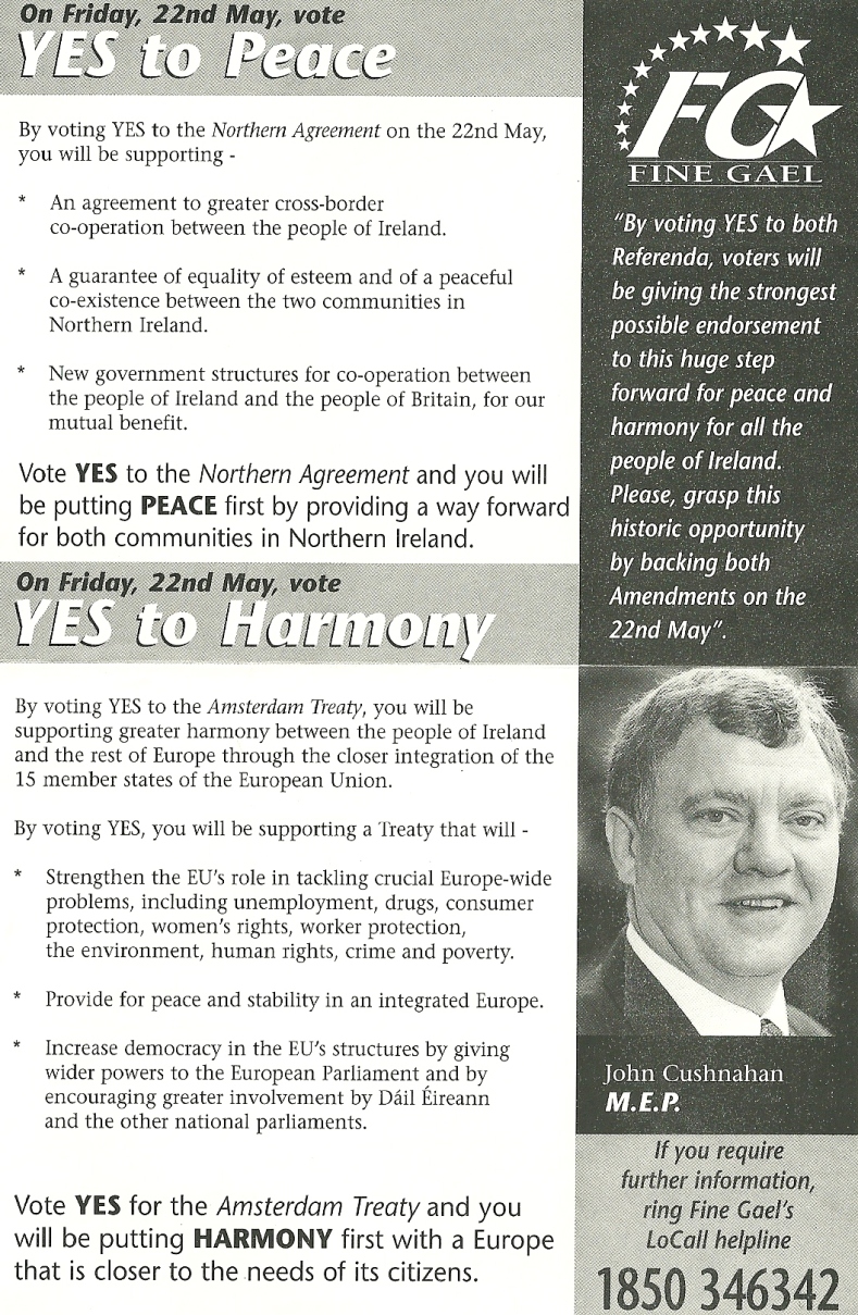 Yes to The Good Friday Agreement leaflet from Fine Gael » fggfa2