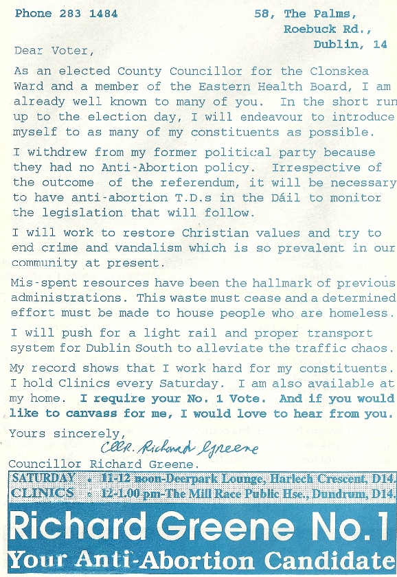 1992 Leaflet for Richard Greene- Independent- Dublin South » rgreene92d