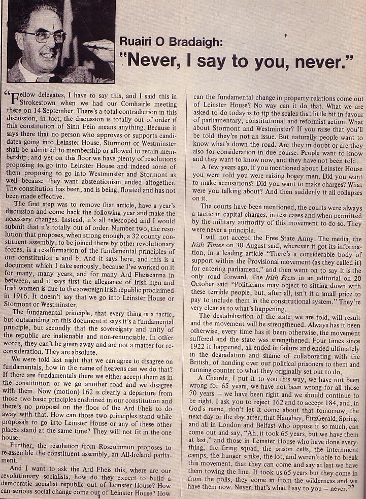 From 1986 Articles from Martin McGuinness and Ruairi O’Bradaigh concerning Sinn Feins abstentionist policy » O Bradaigh 1986