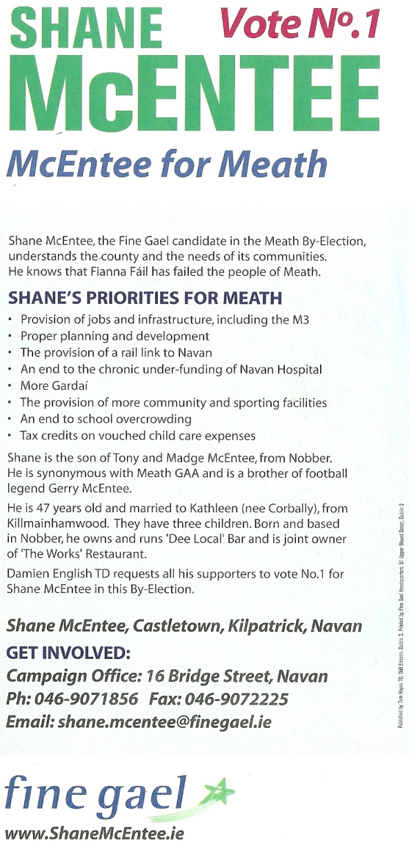 “McEntee For Meath” -Shane McEntee -Fine Gael -2005 Meath By Election » Shanemcentee2